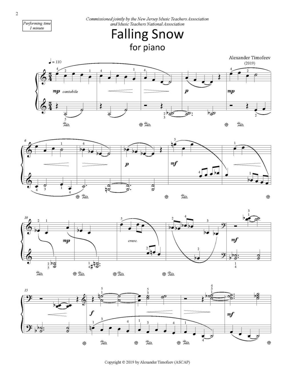 Commissioned jointly by the New Jersey Music Teachers Association and Music Teachers National Association. Premiered at the 2019 NJMTA conference.